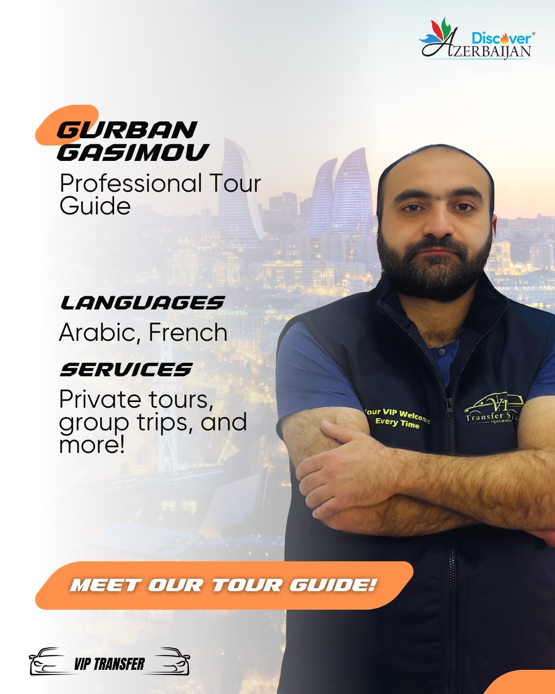 Qurban Qasımov şəxsi turlar və qrup səfərlərində öz peşəkarlığı ilə seçilən, illərin təcrübəsinə sahib bələdçidir. Ərəb və Fransız dillərində mükəmməl ünsiyyət bacarığı sayəsində müxtəlif mədəniyyətlərdən olan turistlər üçün ideal seçimdir. Onun dərin bilikləri, səmimi yanaşması və mükəmməl təşkilatçılığı səyahətlərin hər anını xüsusi və yaddaqalan edir.