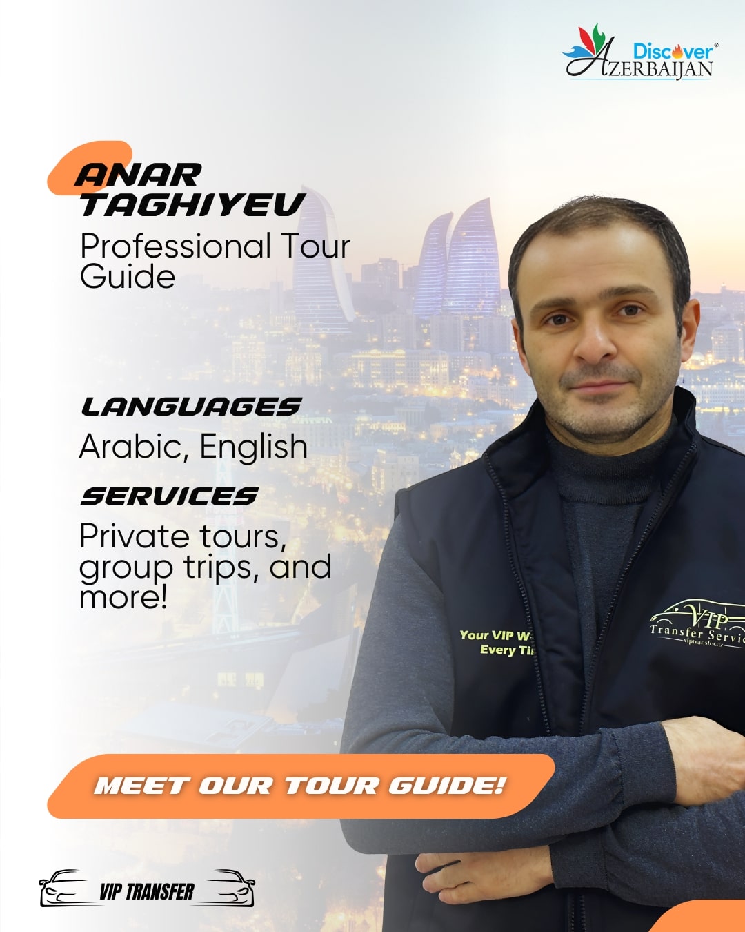 Anar Tağıyev fərdi və qrup turları sahəsində ixtisaslaşmış, mükəmməl bələdçilik təcrübəsinə malikdir. Ərəb və İngilis dillərində peşəkar səviyyədə danışaraq turistlərin ehtiyaclarını dəqiq anlayır və onlara unudulmaz səyahət təcrübəsi təqdim edir. Onun təcrübə və biliyi sayəsində qonaqlar şəhərimizin maraqlı yerlərini həm gəzir, həm də məlumatlar alırlar.