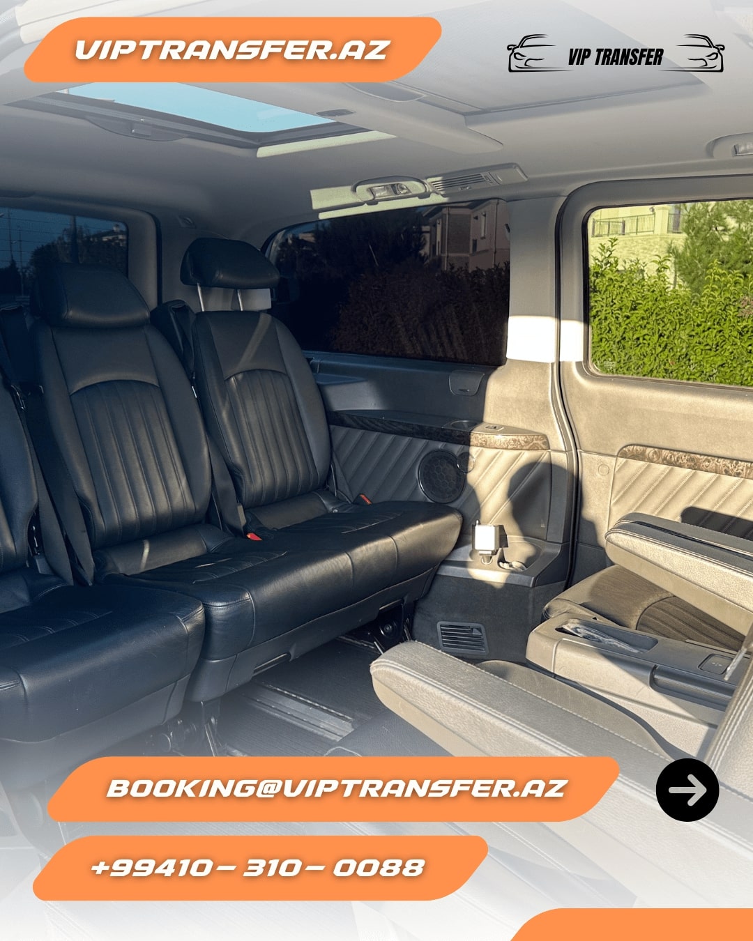 Mercedes-Benz V-Class (VIP Viano) – rahatlıq və prestiji bir araya gətirən mükəmməl seçimdir. Bu lüks biznes vanı geniş interyer və dəbdəbəli dizaynı ilə fərqlənir. Mercedes-Benz V-Class, işgüzar səfərlərdən tutmuş ailəvi gəzintilərə qədər hər bir səyahət üçün ideal şərait yaradır. Avtomobilin rahat oturacaqları və yüksək texnologiyalı təchizatı, sərnişinlərə tam komfort və zövqlü bir sürüş təcrübəsi təmin edir. İş görüşləriniz və ya xüsusi tədbirləriniz üçün VIP səviyyəsində səyahət təcrübəsi yaşamaq istəyənlər üçün mükəmməl seçimdir.